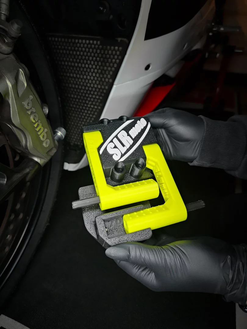 Der BPP wird einfach auf das bestehende BSH Radial-System aufgeschoben und durch einen integrierten Magneten sicher an Ort und Stelle gehalten. Er fügt sich formschlüssig an den Halter an und lässt sich kompakt verstauen – ideal für den Transport zur Rennstrecke oder für den Einsatz in der Werkstatt.